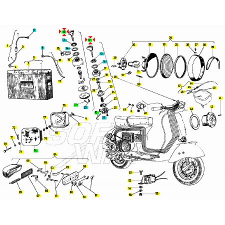 (R.22768) Vendo chiave del commutatore sopra il manubrio nuova marchiata Siem per Piaggio Vespa GS 150 dal 1955 e Vespa Super Sport 180 dal 1955 simile a codice Piaggio 056940 con lunghezza chiave 35,2 mm e larghezza chiave 5 mm , per misure con applicazioni e spaccato vedere foto