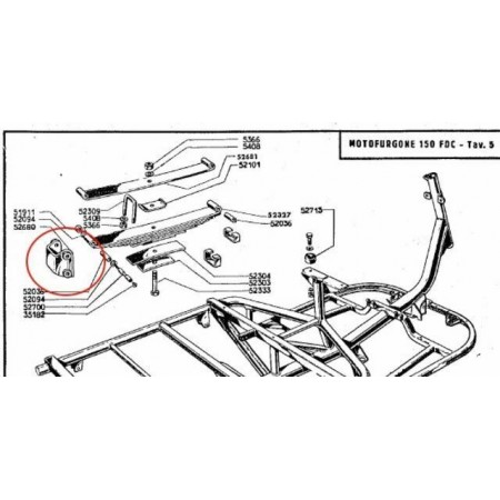 (R.9712) Vendo supporto sospensione posteriore nuovo per Innocenti Lambro FDC 150 con codice 52680 - 40181441 , per esploso vedere foto
