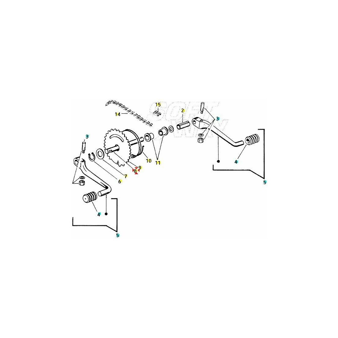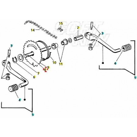 (R.4751) Vendo asse pedaliera usato per Piaggio Bravo 3 e Superbravo 50 cc dal 1985 con telai EEC5T e EEV3T e con codice Piaggio 235907, per misure con applicazioni ed esploso vedere foto