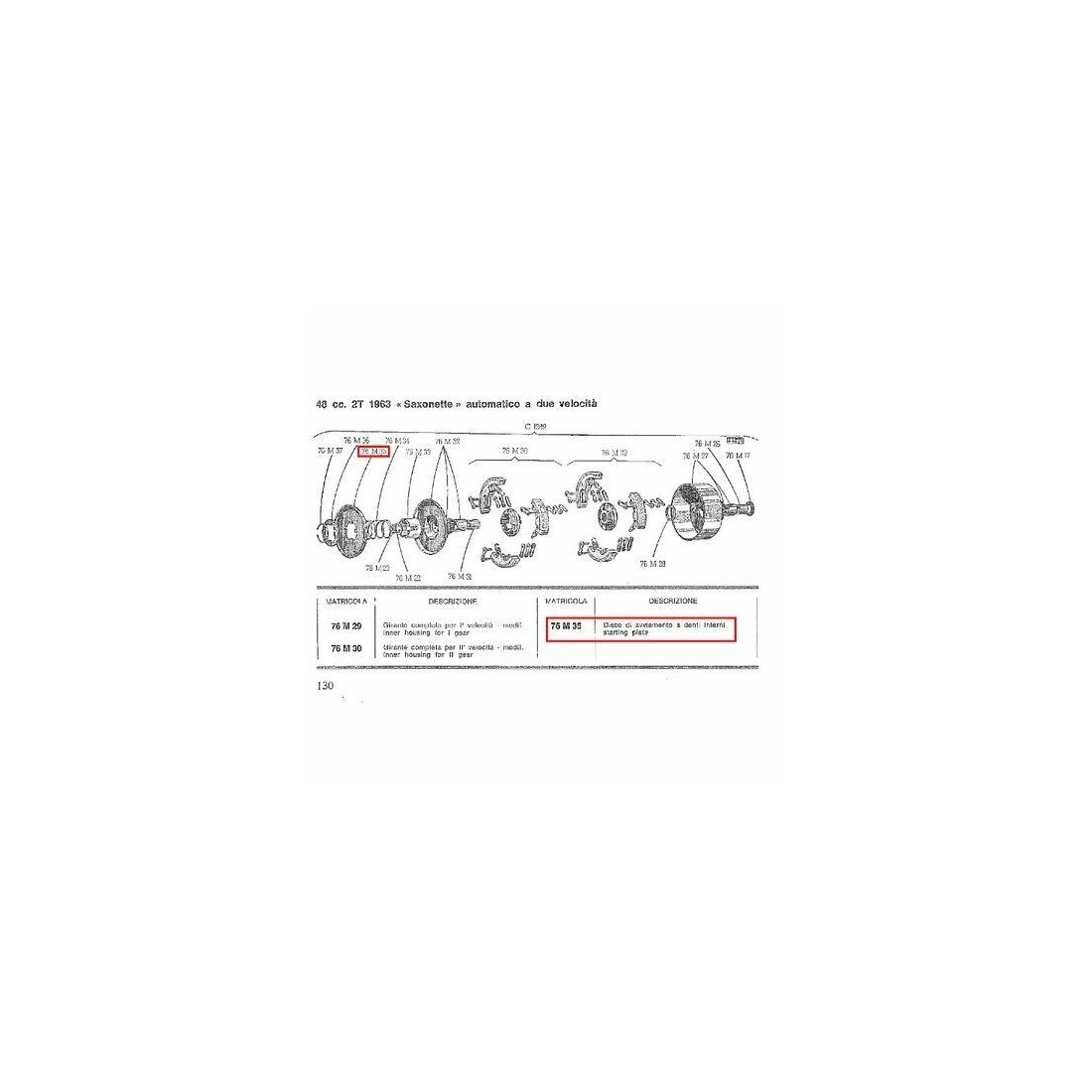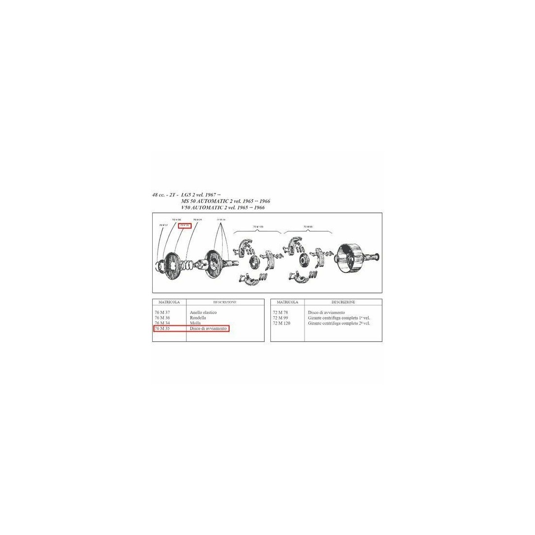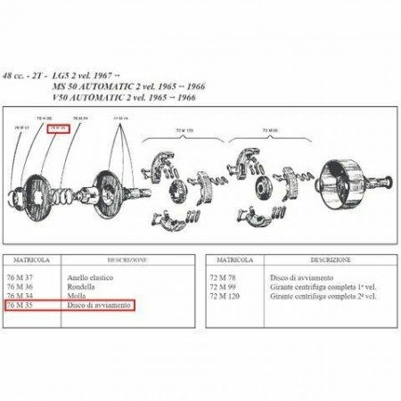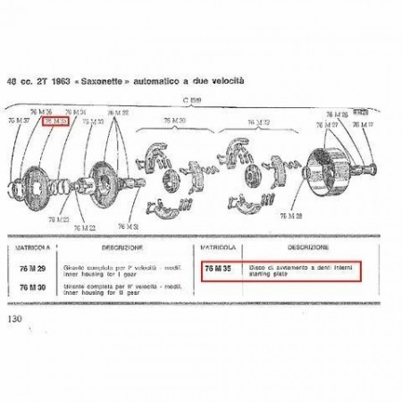 (R.12767) Vendo disco avviamento frizione a denti interni nuovo per Sachs Saxonette 48 cc automatica 2 velocita - Puch 48 cc 2T LG5 2 velocita dal 1967 - MS 50 automatic 2 velocita dal 1965 al 1966 - V50 automatic 2 velocita dal 1965 al 1966 marchiato Surflex con codice 76M35 o 76 M 35 , per misure ed esploso vedere foto