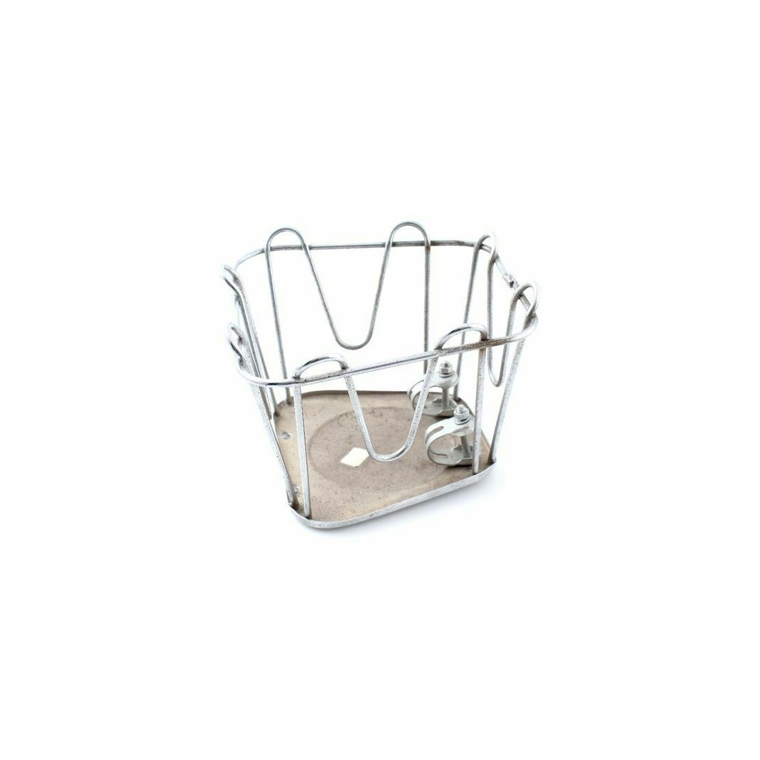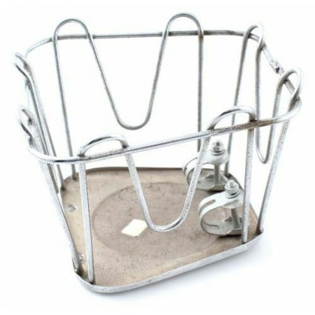 (R.7659) Vendo portaoggetti anteriore nuovo vintage in ferro cromato per bicicletta e ciclomotore generico con fissaggio a fascetta al manubrio , per misure vedere foto