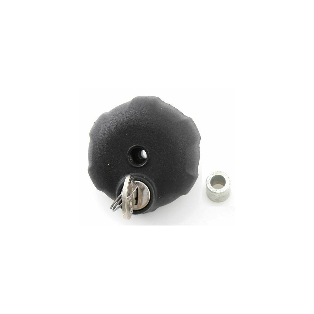 (R.7474) Vendo pomello antifurto nuovo di colore nero Mrdige kit knob per porta bici posteriore con codice 1-0293 , 10293 completo di doppia chiave , filetto vite da 6 mm , per misure vedere foto , foto montaggio dimostrativa