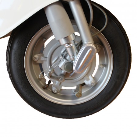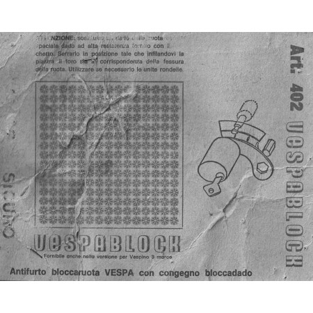 (R.7361) Vendo kit bloccaruota anti furto nuovo per Piaggio Vespa marca Vespablock con codice 402 completo di doppia chiave , con diametro perno di 9 mm , per misure vedere foto , foto come esempio del montaggio