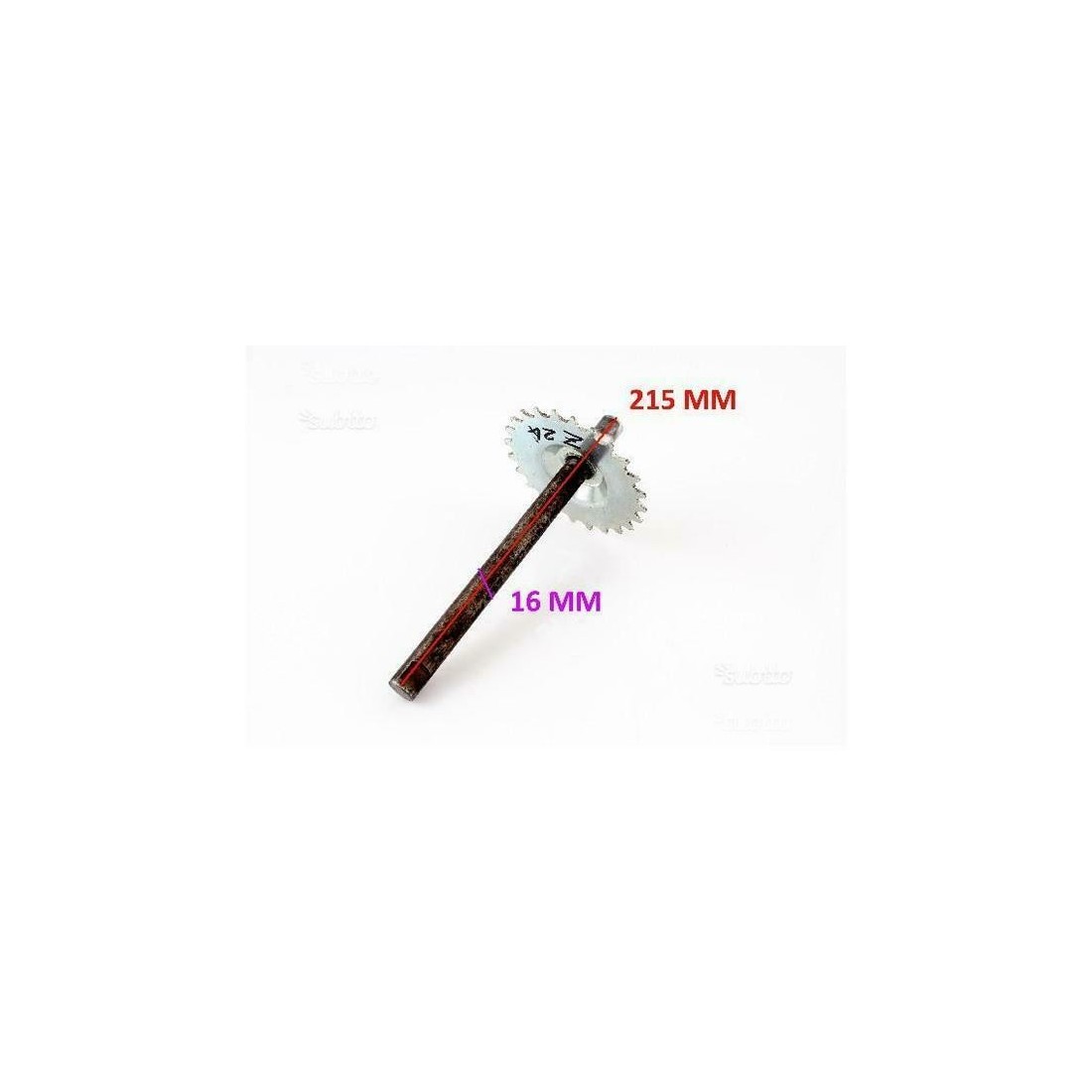 (R.4127) Vendo asse fissaggio pedivelle usato pari al nuovo per Peugeot 103 da denti 24 con lunghezza 215 mm circa , per misure vedere foto
