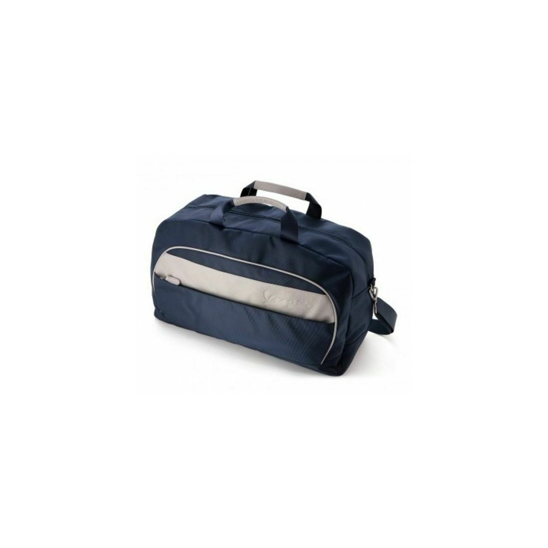 (R.6625) Vendo travel bag borsone da viaggio nuovo per Vespa in tessuto tecnico e Polyuretanica completo cinghia a tracolla estraibile con misure 52 x 30 x 22 cm di colore blu e grigio con scritta vespa e codice Piaggio 605609M0BG