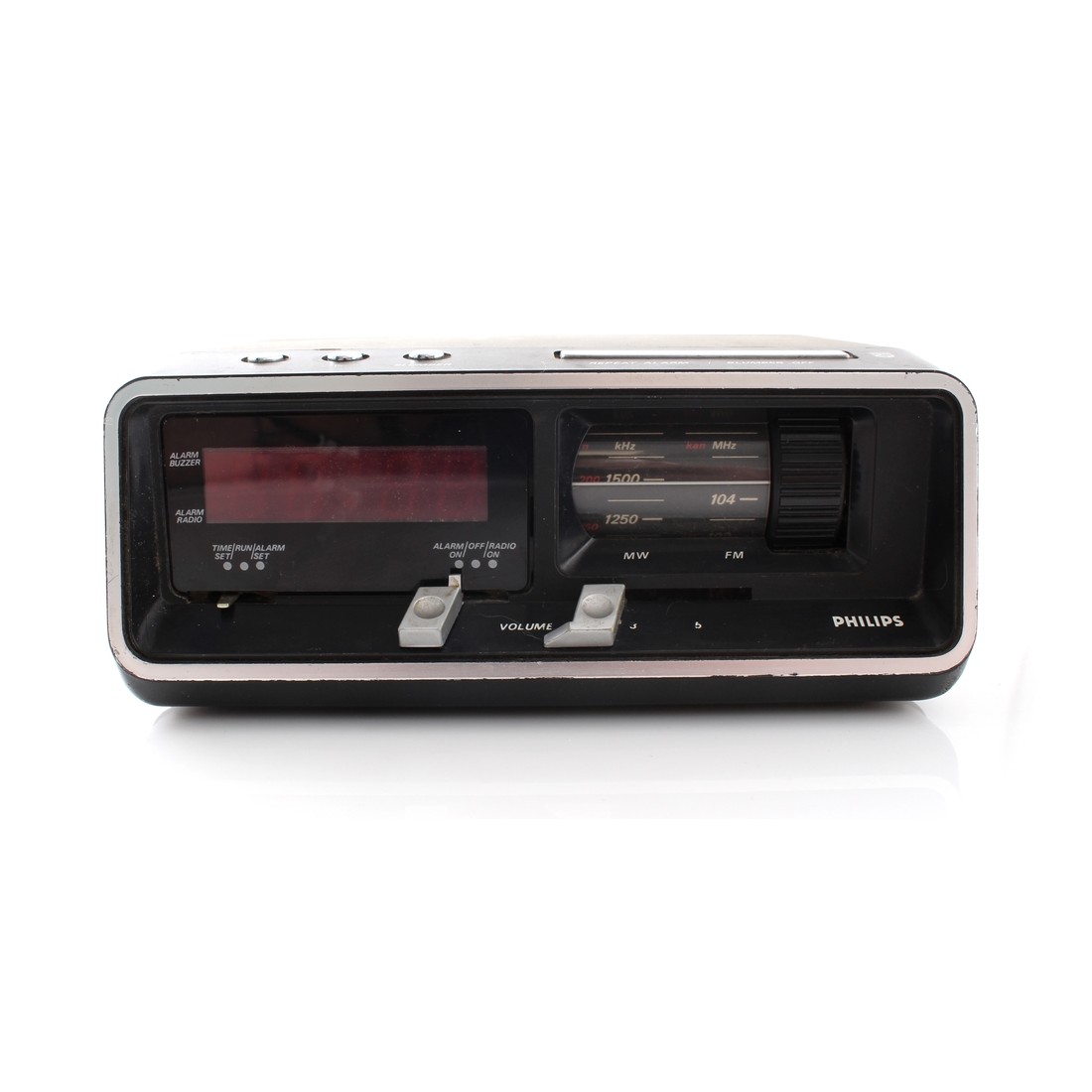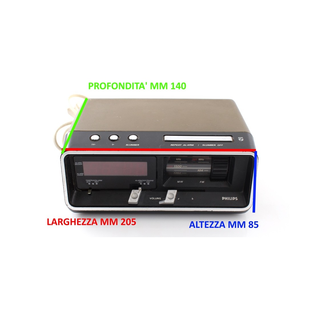(R.7279) Vendo radiosveglia vintage usata funzionante marca Philips colore verde oliva modello Musiclock 90 90AS/160/00/00S originale epoca numero 145344 , per misure vedere foto.