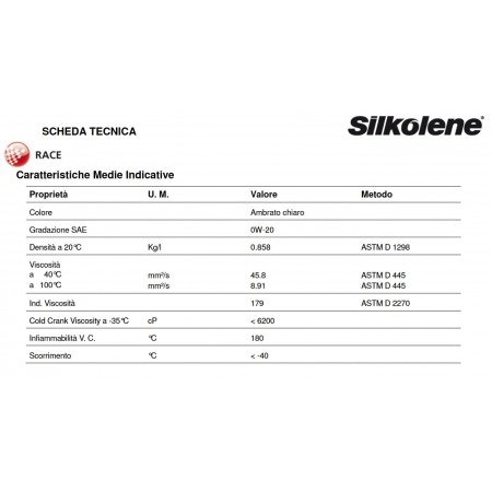 (R.14983) Vendo barattolo 5 litri olio motore completamente sintetico 0W-20 Silkolene Advanced Development Project da utilizzarsi solamente in competizione e pista . I motori racing tendono a perdere potenza e a non sfruttare tutta l’energia a disposizione a causa degli attriti interni provocati dal lubrificante. Il nuovo Silkolene 0W-20 è un prodotto unico, a bassissima viscosità, che elimina i problemi generati dagli attriti interni garantendo un eccellente film lubrificante anche nelle condizioni di massimo stress. La tecnologia degli additivi è basata sulla Attrazione Elettrostatica che consente di ridurre al minimo l’attrito nei punti cruciali, quali ad esempio valvole e trasmissioni di potenza – due fonti di energia nascoste che garantiscono il miglioramento delle prestazioni nella fase di accelerazione e di pieno regime. Per scheda tecnica vedere foto