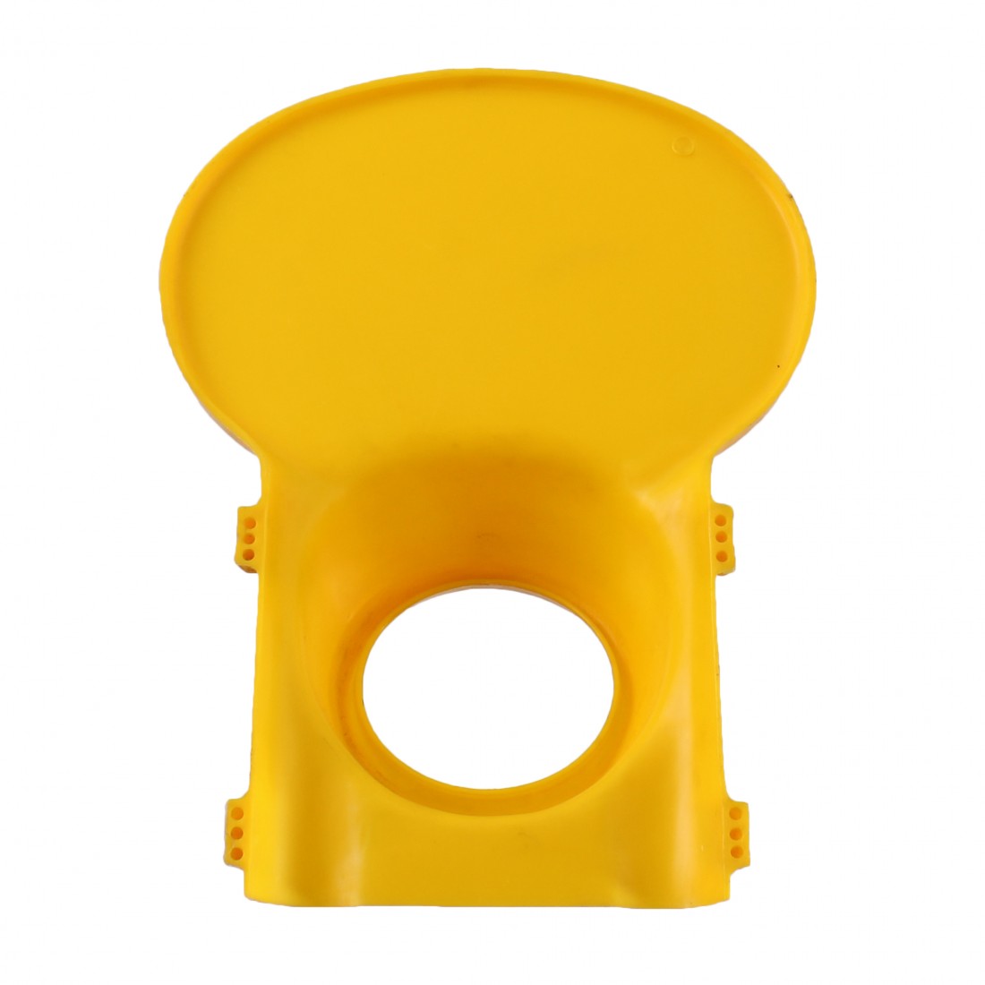 (R.14985) Vendo mascherina fanale anteriore con foro tondo da 86 mm nuova tipo M. Robert o Saltafoss per biciclette da bimbo in plastica di colore giallo con leggeri segni di magazzinaggio , per misure vedere foto