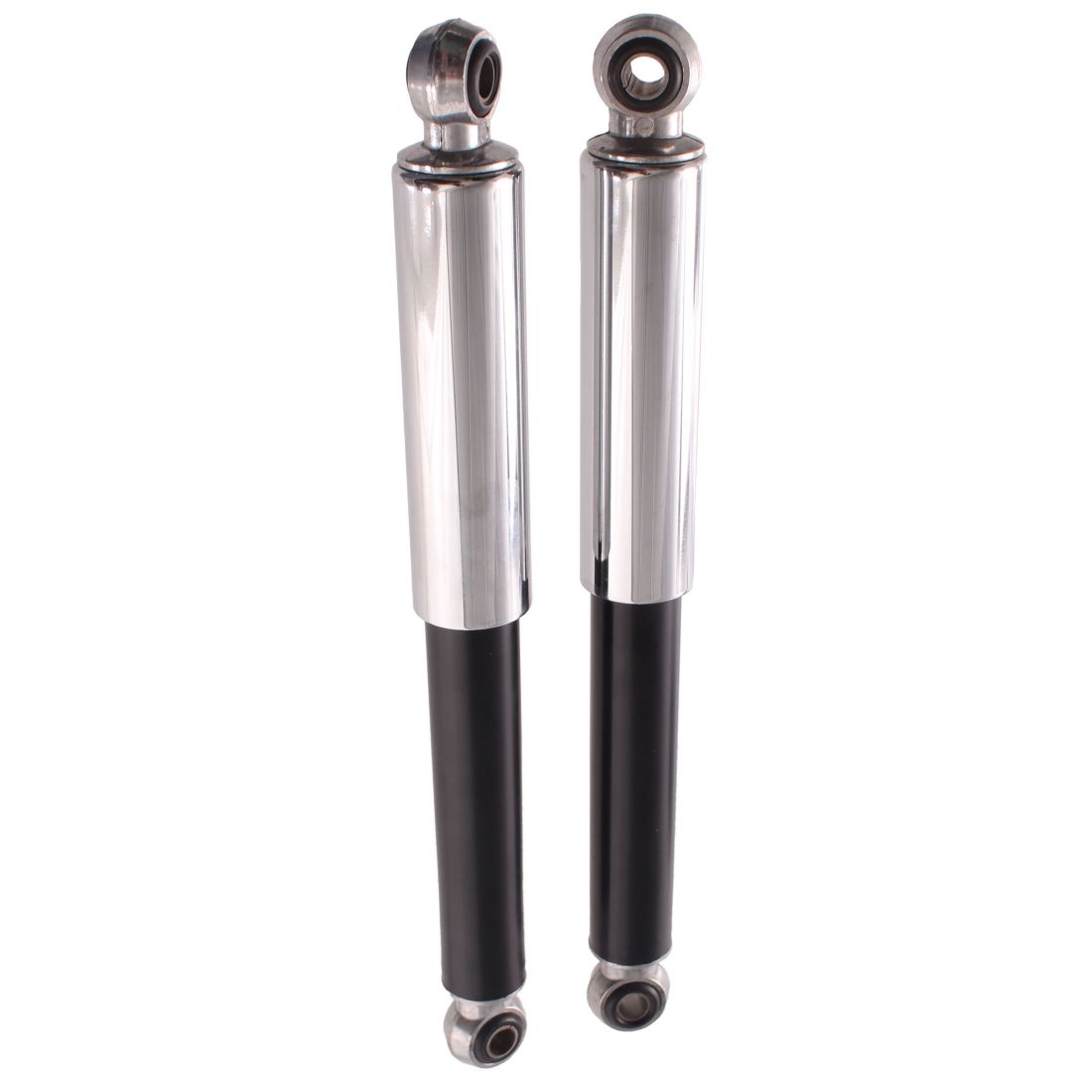(R.21893) Vendo coppia ammortizzatori posteriori nuovi molle coperte con interasse fori 310 mm e fori di fissaggio da 10 mm .per ciclomotori vari epoca di colore cromato e nero , il prezzo si intende per la singola coppia , per misure vedere foto
