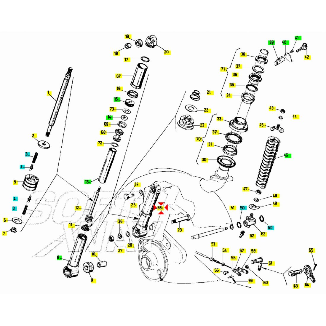 (R.22424) Vendo sospensione anteriore nuova con carcassa in plastica per Piaggio Vespa 125 dal 1961 al 1966 con telaio dal VNB3T al VNB6T - Vespa GL 150 dal 1962 al 1965 con telaio VLA1T - Vespa GT 125 dal 1961 al 1973 con telaio VNL1T e VNL2T - Vespa Rally 180 e 200 dal 1968 al 1979 con telaio VSD1T e VSE1T - Vespa GTR 125 dal 1969 al 1978 con telaio VNL2T - Vespa Sprint 150 dal 1965 al 1966 con telaio VLB1T - Vespa TS 125 dal 1975 al 1978 con telaio VNL3T simile a codice Piaggio 1375714 , per applicazioni e spaccato vedere foto