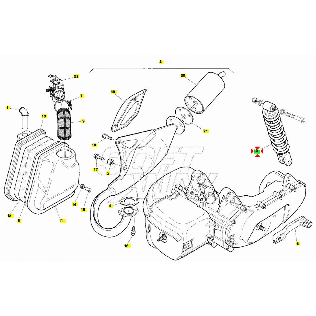 (R.22577) Vendo ammortizzatore posteriore nuovo per Aprilia SR 50 prima serie dal 1993 al 1996 - SR LC 50 dal 1994 al 1996 - Scarabeo 50 dal 1993 al 1997 , simile a codice Aprilia AP8203631 con interasse fori di fissaggio 295 mm , per applicazioni e spaccato vedere foto