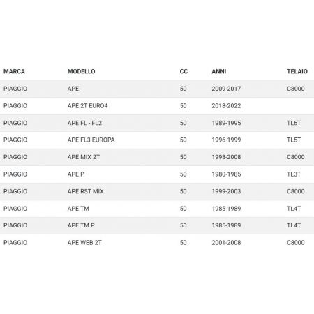 (R.23040) Vendo ammortizzatore anteriore nuovo per Piaggio Ape 50 dal 2009 - Ape FL FL2 50 dal 1989 - Ape FL3 Europa 50 dal 1996 - Ape Mix 50 dal 1998 - Ape P 50 dal 1980 - Ape RST Mix 50 dal 1999 - Ape TM e Ape TM P 50 dal 1985 - Ape Web 50 dal 2001 , per applicazioni vedere foto
