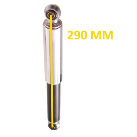 (R.24230) Vendo coppia di sospensioni posteriori nuova per ciclomotori vari 50 cc con interasse fori di fissaggio da 290 mm marca I.m.c.a. con codice 042 di colore cromato parte superiore e nero parte inferiore , per misure vedere foto , il prezzo si intende per la singola coppia