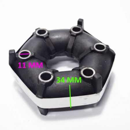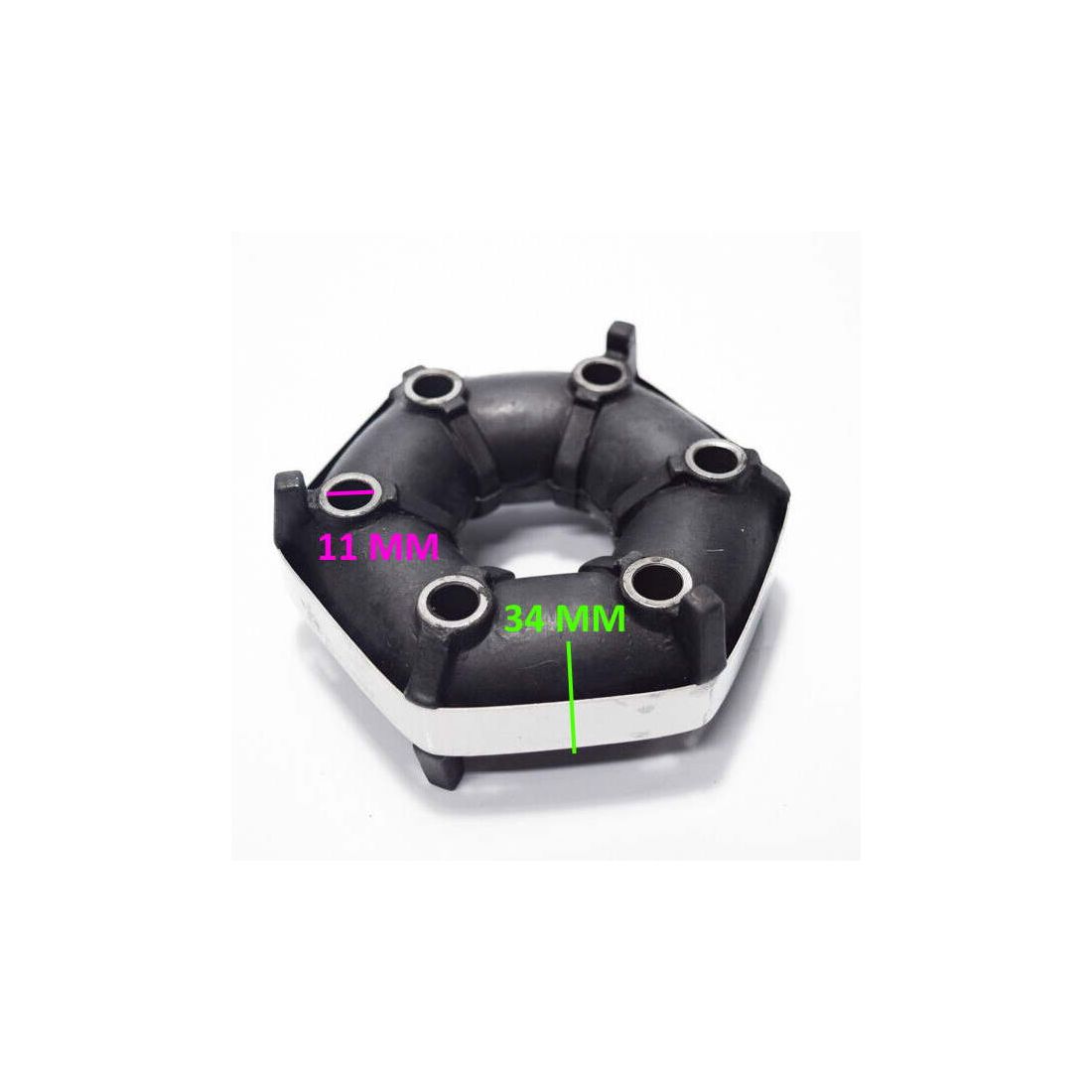 (R.17686) Vendo giunto elastico trasmissione nuovo con fori di fissaggio di 11 e altezza gomma di 34 mm , per Piaggio Ape Car P2 e P3 220 cc dal 1972 - Ape MP P501 e P601 220 cc dal 1978 - Ape TM 220 e 420 cc dal 1982 simile a codice Piaggio 2283020001 , per applicazioni vedere foto