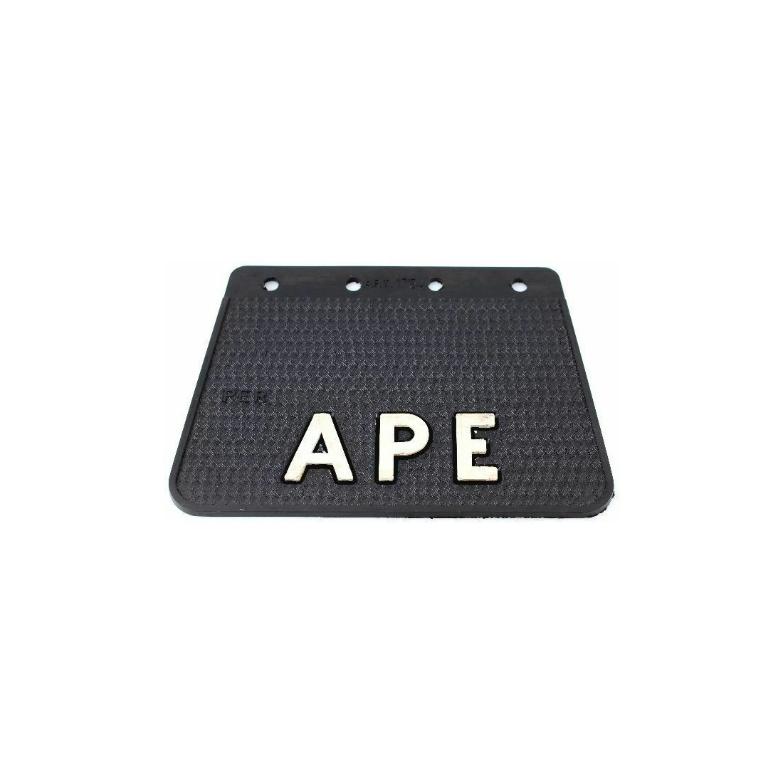 (R.6306) Vendo gomma paraspruzzi nuova per parafanghi posteriori Piaggio Ape Mp e vari in gomma con scritta Ape in colore bianco con gomma molto spessa , il prezzo si intende per singolo pezzo , più pezzi disponibili , misure larghezza superiore 140 mm. , larghezza inferiore 160 mm. , altezza 190 mm. , per misure vedere foto