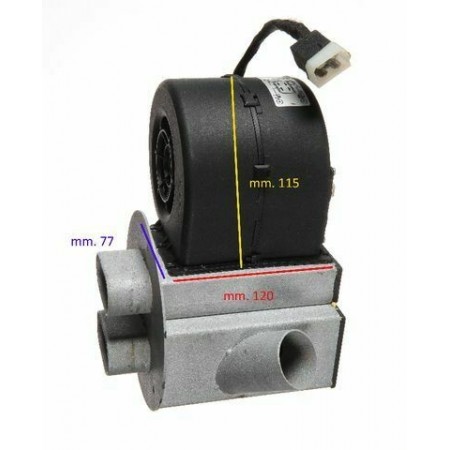 (R.5700) Vendo motorino aria forzata usato pari al nuovo per Ape modello Spal 008 - A37 - C-42D 12 volt a 3 velocità con dimensione flangia mm. 77 x 120 , completo di bocchettone di uscita aria e attacchi tubi