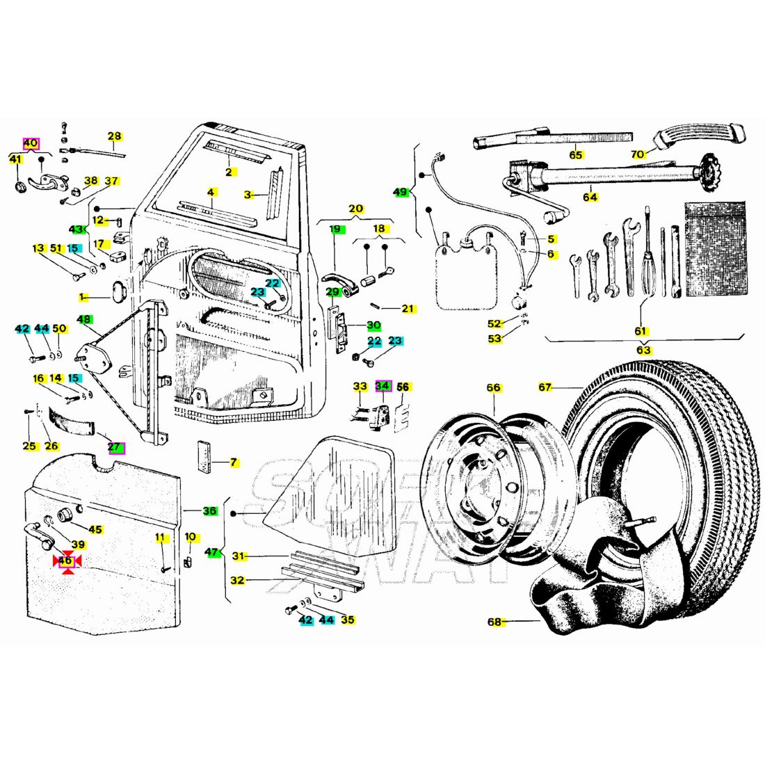 (R.14775) Vendo maniglia alza vetro del finestrino usata per Piaggio Ape Car P2 e P3 220 dal 1978 - Ape Poker benzina e diesel 420 dal 1993 - Ape Car Max diesel 220 e 420 cc dal 1972 con codice Piaggio 261413 , per applicazioni e spaccato vedere foto
