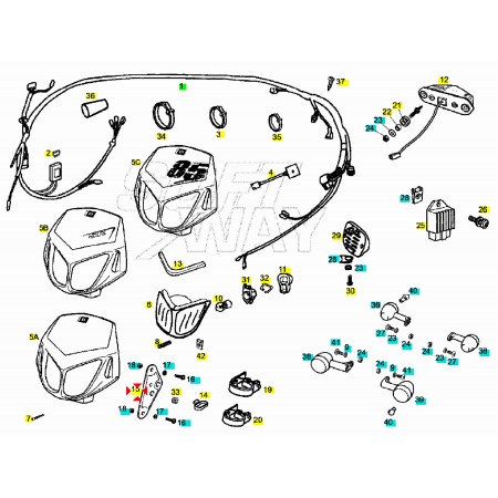 (R.21640) Vendo gomma supporto del faro anteriore nuovo per Derbi Senda 50 cc dal 2003 al 2008 con codice Derbi 00H01503741 , per applicazioni e spaccato vedere foto