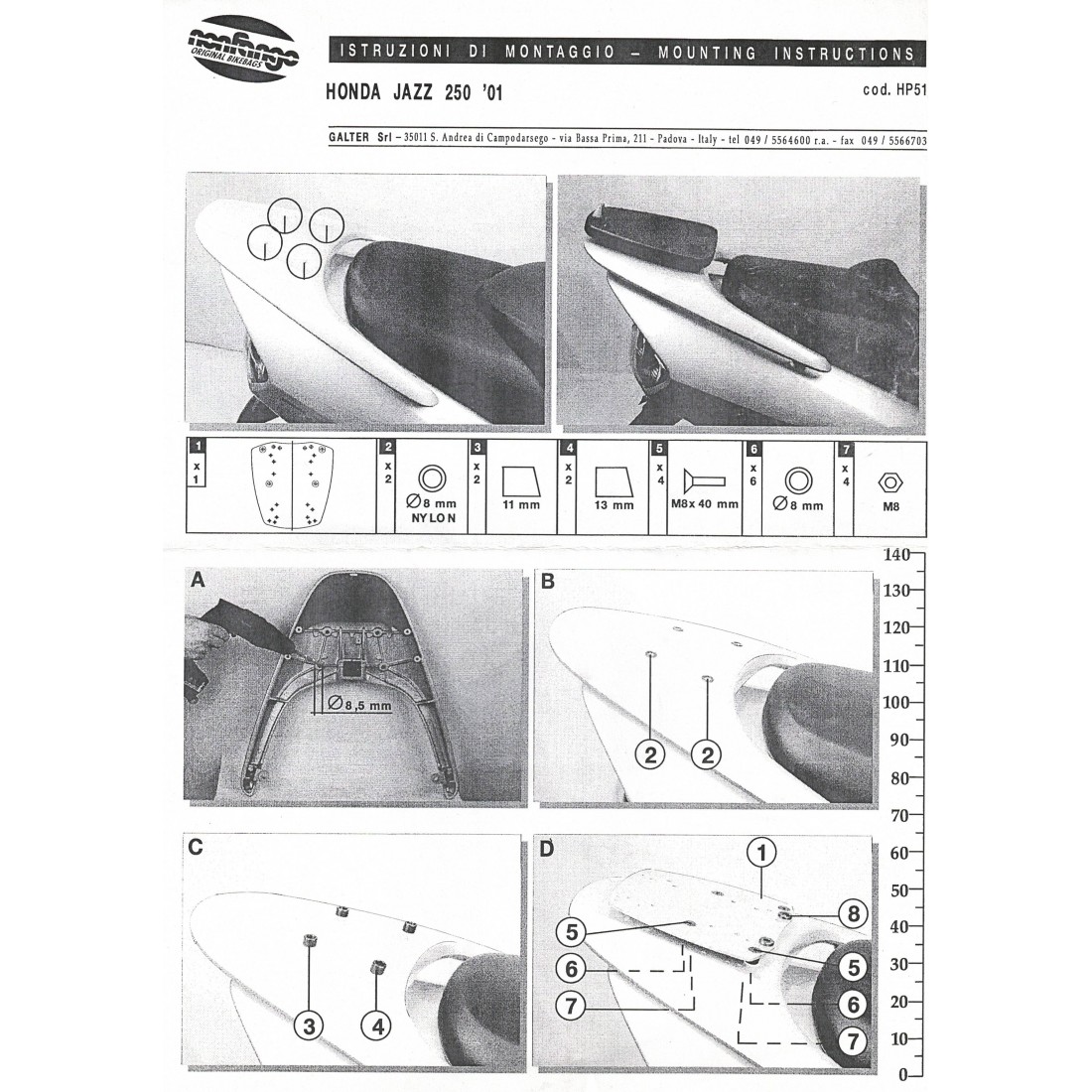(R.16027) Vendo base piastra nuova per Honda Jazz 250 cc del 2001 e 2003 con minuteria incompleta , per istruzioni di montaggio vedere foto