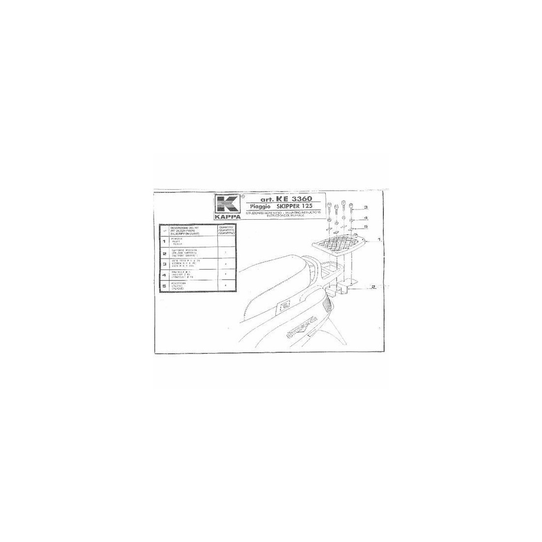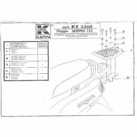 (R.12806) Vendo kit supporto piastra portapacchi posteriore nuovo per Piaggio Skipper 125 cc marchiato Kappa con codice KE3360 di colore nero , il prezzo si intende per singolo kit , disponibile solo supporto no piastra , per istruzioni di montaggio vedere foto