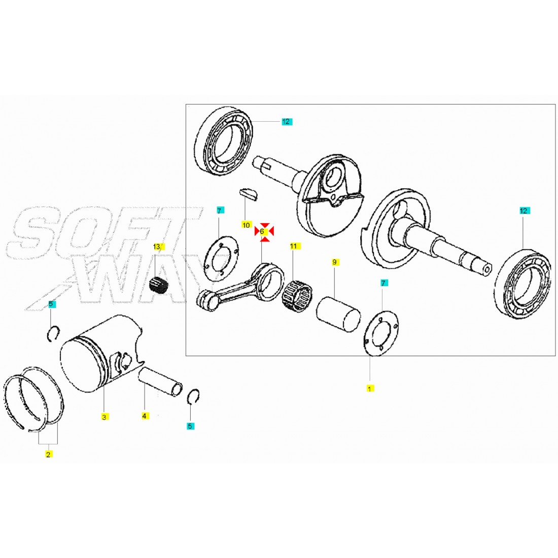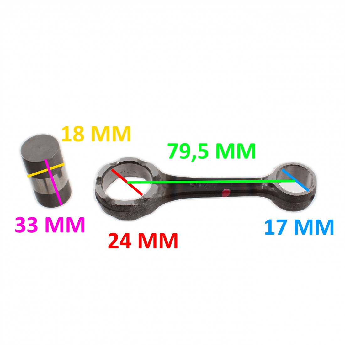 (R.15363) Vendo biella con asse da 18 x 33 mm senza gabbie a rulli e spinotto nuova per Sym DD 50 cc dal 2002 - Jet 50 cc dal 1999 - Jungle 50 cc dal 1999 - Mask 50 cc dal 2000 - Red Devil 50 cc dal 1999 - Super Fancy 50 cc dal 1998 con codice 13201GAH300 marchiata Sym GAH 166 con diametro fori 24 mm e 17 mm e interasse 79,5 mm , per misure con applicazioni ed esploso vedere foto