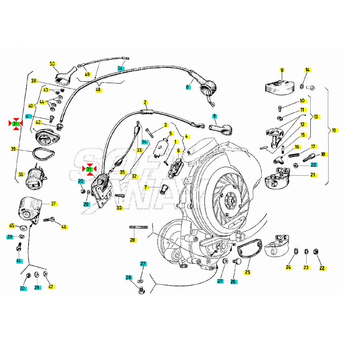 (R.15670) Vendo bobina alta tensione nuova per Piaggio Vespa Sprint - GR - Super - Rally 125 cc dal 1965 - Vespa GS - Super Sport 150 cc dal 1955 simile a codice Piaggio 0937345 , per applicazioni ed esploso vedere foto