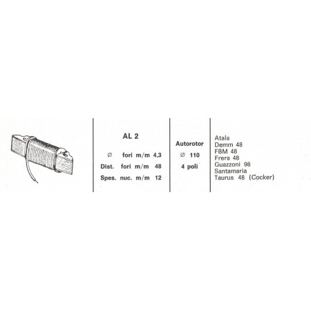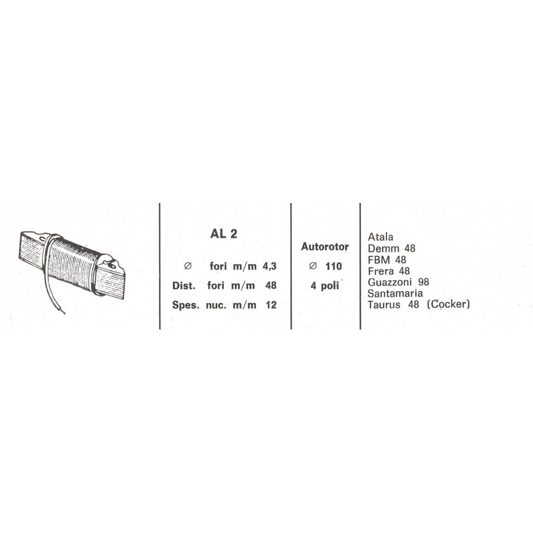 (R.17102) Vendo bobina alimentazione nuova marca Ceab con codice AL 2 adattabile su volano Bosch per ciclomotori Atala - Demm - FBM - Frera - Guazzoni - Santamaria - Taurus con diametro fori di fissaggio da 4,3 mm e interasse fori di 48 mm , per misure vedere foto