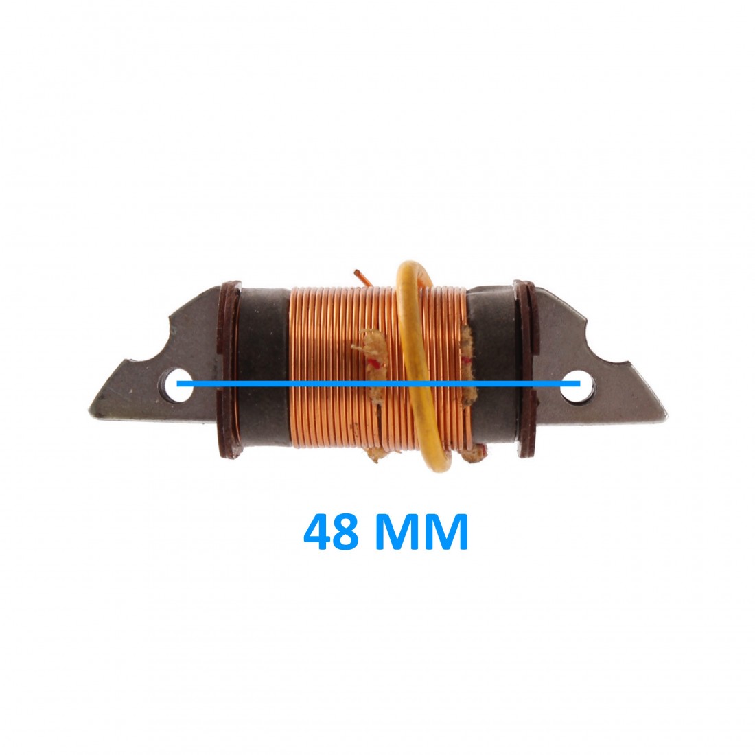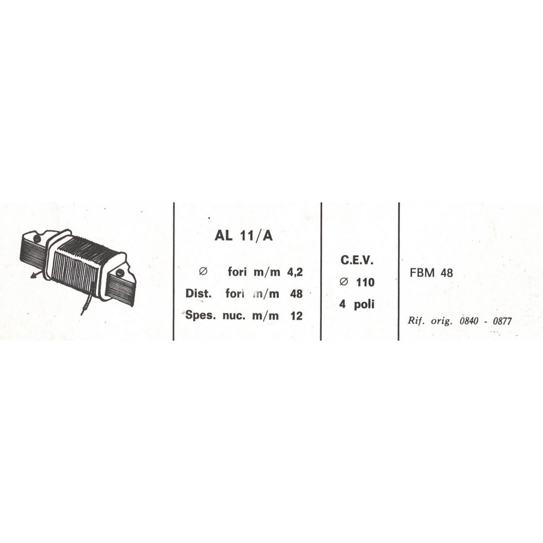 (R.17104) Vendo bobina di alimentazione nuova marca CEAB con codice AL 11/A adattabile su volani Bosch per ciclomotori vari tipo FBM Minarelli  con interasse fori di fissaggio 48 mm e spessore nucleo di 12 mm , per misure vedere foto