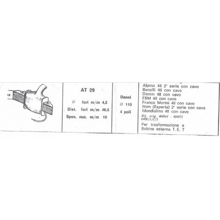 (R.4533) Vendo bobina accensione alta tensione nuova marca Dansi per 4 poli CEAB AT 29 o SGR 001137 - AV 202 - 40707 - 6401 con interasse fori da 46,6 mm e spessore nucleo da 10 mm per Alpino 48 seconda serie - Benelli 48 - Demm 48 - Fbm 48 - Franco Morini 48 - Itom seconda serie - Mondialino 48 , per misure e scansione vedere foto