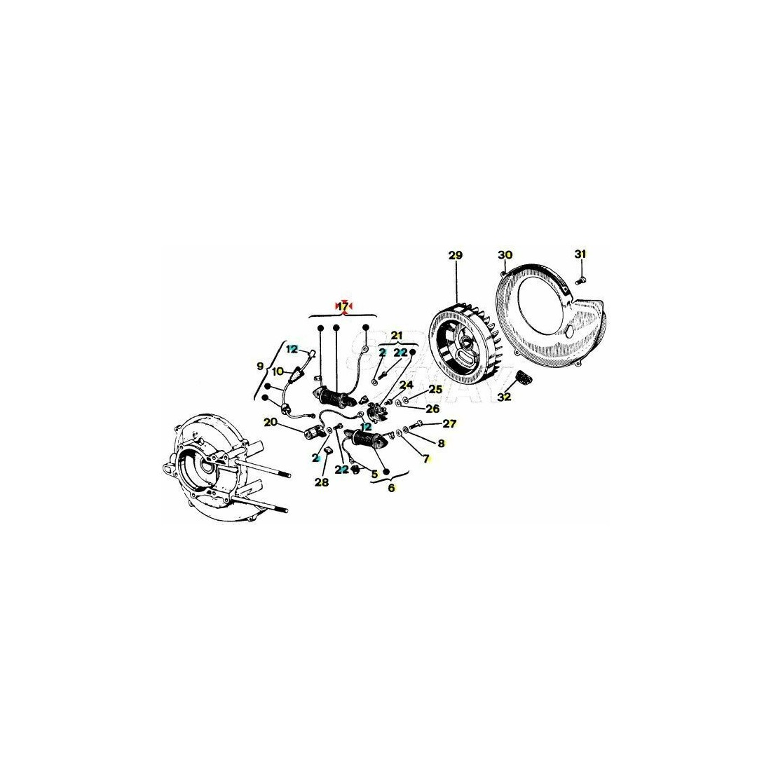 (R.3670) Vendo bobina alimentazione usata pari al nuovo per Piaggio Ciao prima serie (1980 al 1988) - Grillo - Si - Bravo 2 dal 1979 con telai SIM1T - SIV1T - CXM - CXV - C7E2T - C7V4T - EEM1T - EEV4T e codice Piaggio 1218225 , per applicazioni ed esploso vedere foto
