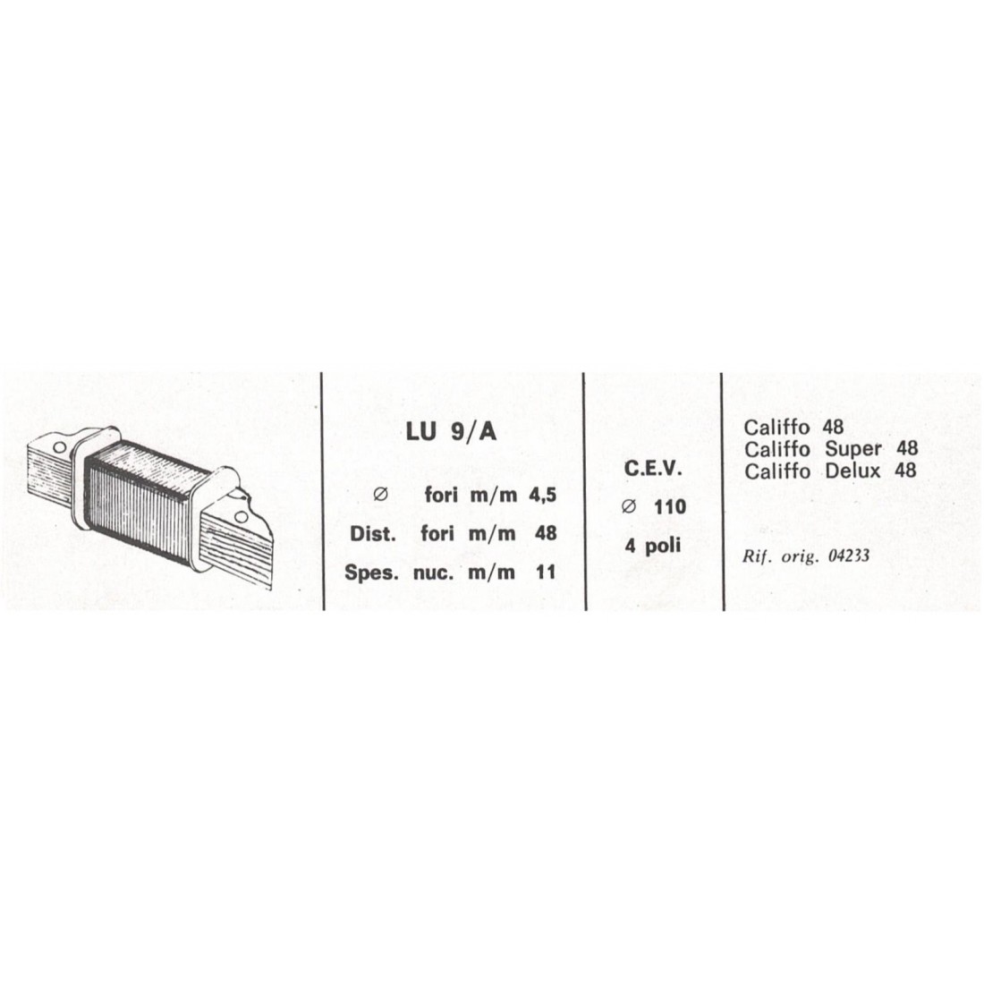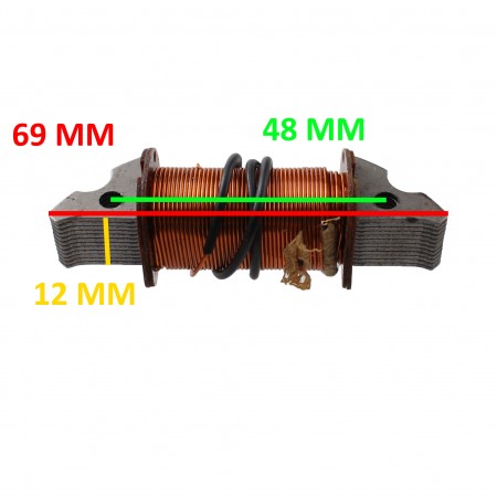 (R.14332) Vendo bobina illuminazione nuova per ciclomotori vari epoca con motore Minarelli V 1 con volano Cev 4 poli da 110 mm - Atala Rizzato Califfo - Super - Deluxe con codice CEAB LU 9/A con interasse fori 48 mm e lunghezza totale 69 mm con spessore nucleo 12 mm , per misure vedere foto