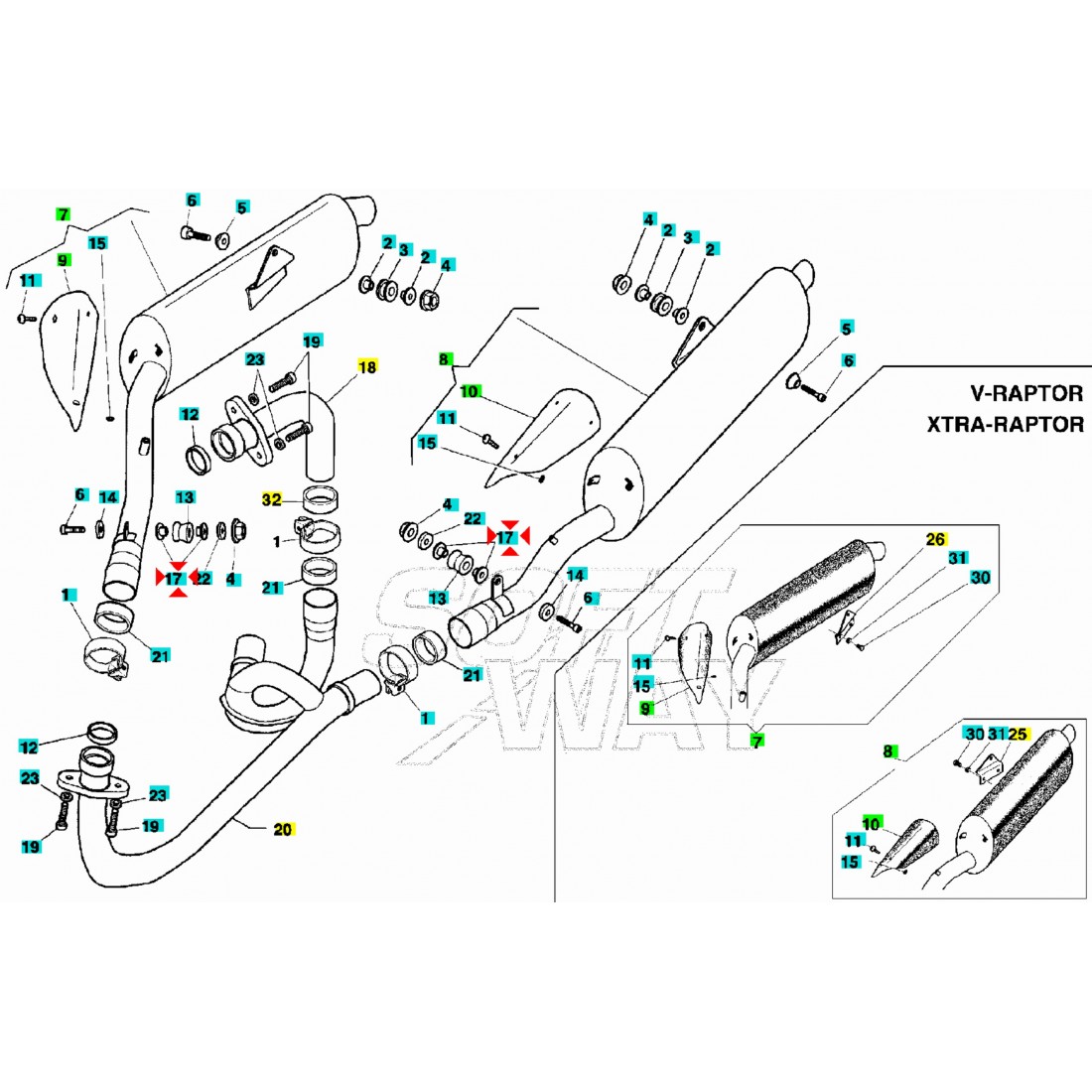 (R.16388) Vendo distanziale silent block su scarico nuovo per Cagiva Raptor - V Raptor - X-tra Raptor 650 - 1000 cc dal 2000 con diametro interno di 9 mm diametro esterno di 13 mm e diametro base di 20 mm con codice 800049050 - 49050 , per misure applicazioni ed esploso vedere foto