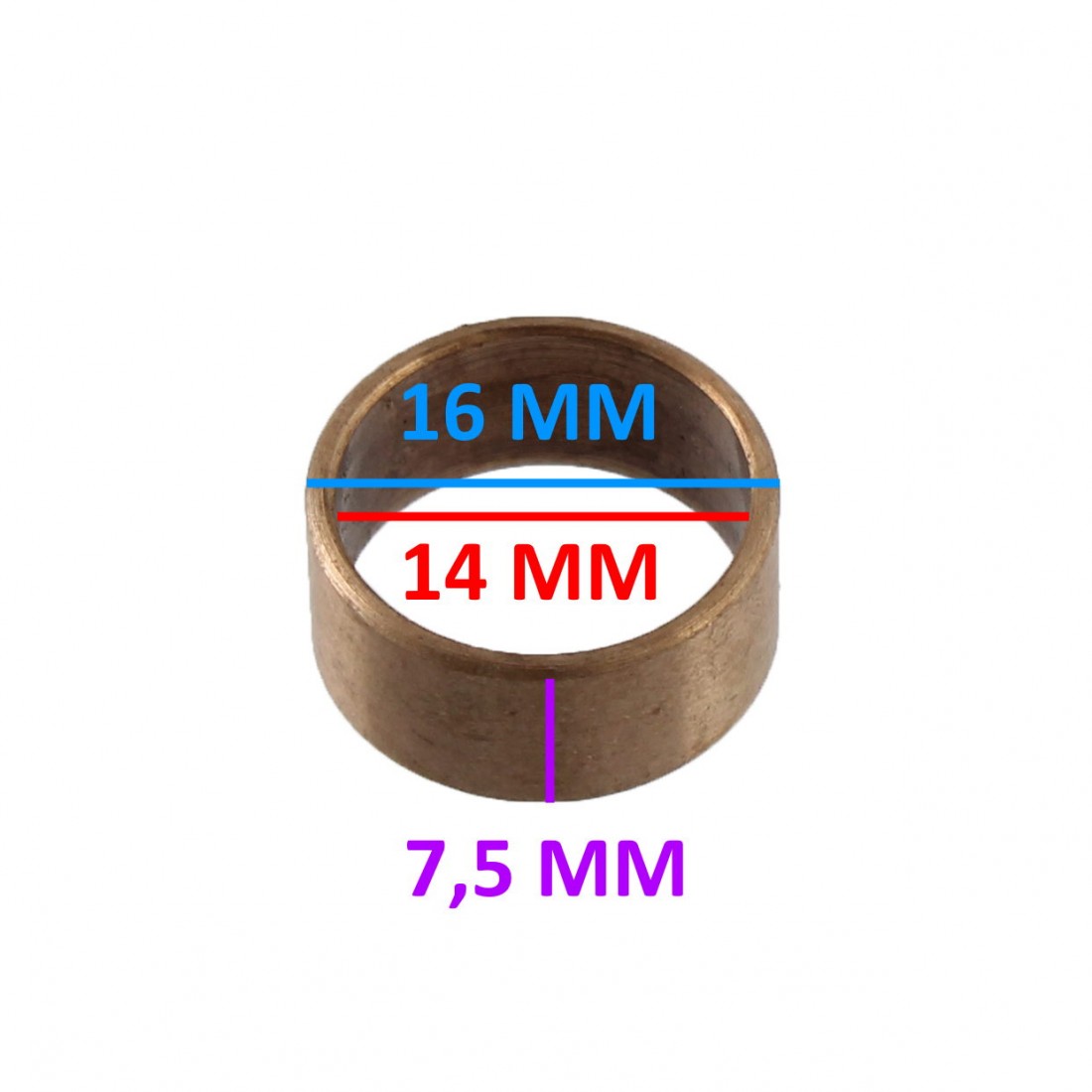 (R.16465) Vendo boccola nuova per ingranaggio quinta velocità per Cagiva con codice 800017292 con diametro interno di 14 mm diametro esterno di 16 mm e altezza di 7m5 mm , per misure vedere foto