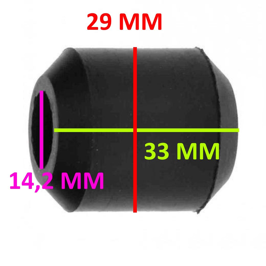 (R.22629) Vendo boccola in gomma dell'attacco inferiore dell'ammortizzatore posteriore nuova per Piaggio Vespa dal 1954 al 1957 con diametro foro interno 14,2 mm , diametro esterno 29 mm e altezza 33 mm , per misure vedere foto