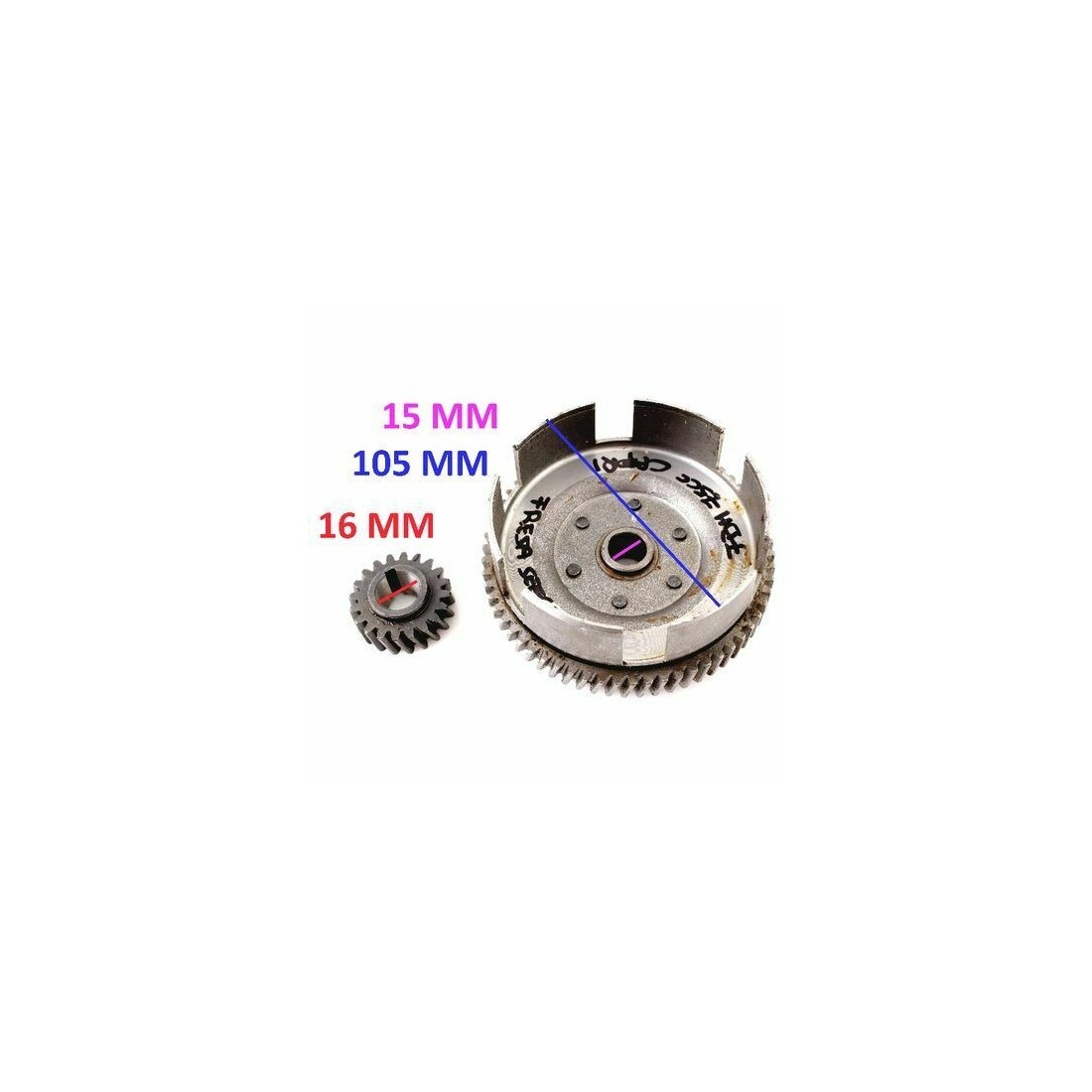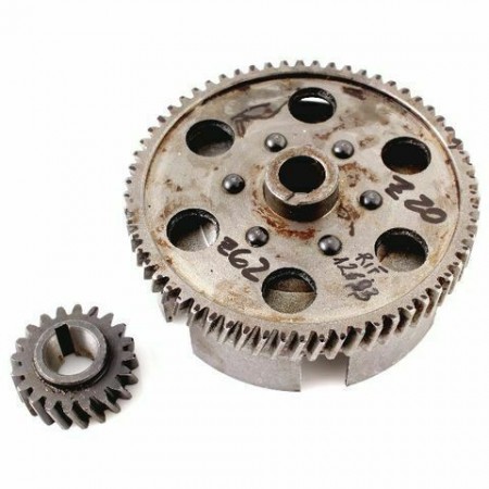 (R.2135) Vendo coppia ingranaggi frizione nuova per Agrati Garelli Capri cilindrata 75 cc. con pignone 20 denti e campana 62 denti elicoidali , per misure vedere foto