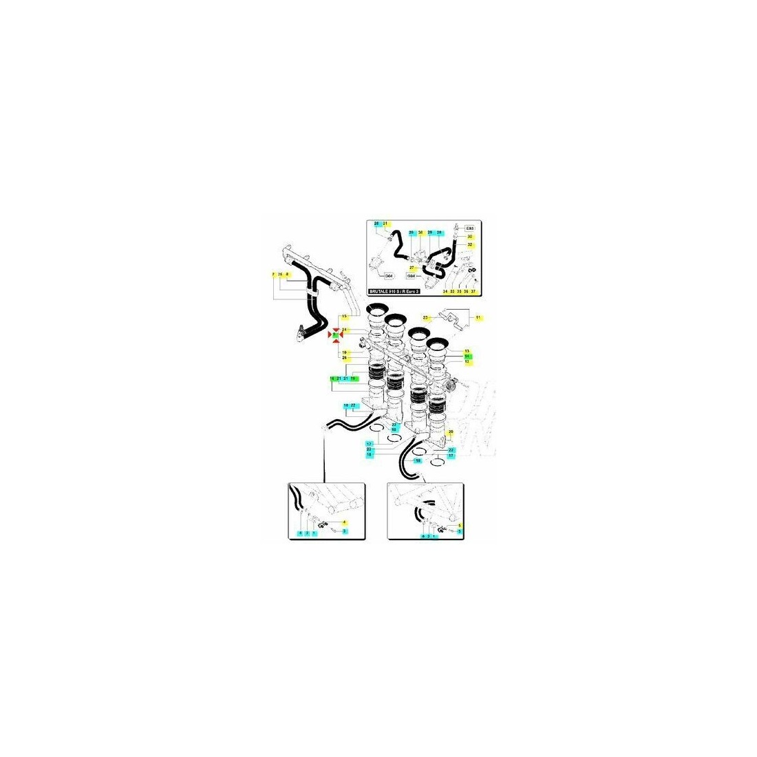 (R.8037) Vendo corpo farfallato completo usato per MV Agusta Brutale 910 cc per telai F411AC e F411AD dal 2005 con codice MV 8000A5494 - A5494 , per applicazioni ed esploso vedere foto