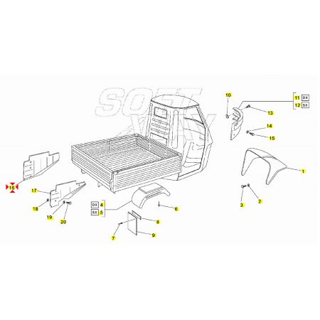 (R.23701) Vendo grembialina sinistra usata per Piaggio Ape 50 - Ape FL FL2 FL3 Europa 50 dal 1989 - Ape RST Mix 50 dal 1998 - Ape P 50 dal 1980 - Ape TM P 50 dal 1985 , originale Piaggio con codice 119839 , per applicazioni e spaccato vedere foto