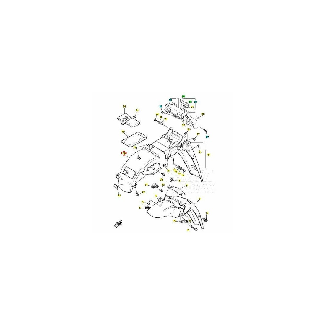 (R.10457) Vendo parafango posteriore interno usato per Yamaha FZR 1000 cc dal 1987 con codice 2GH216290000 , per applicazioni ed esploso vedere foto