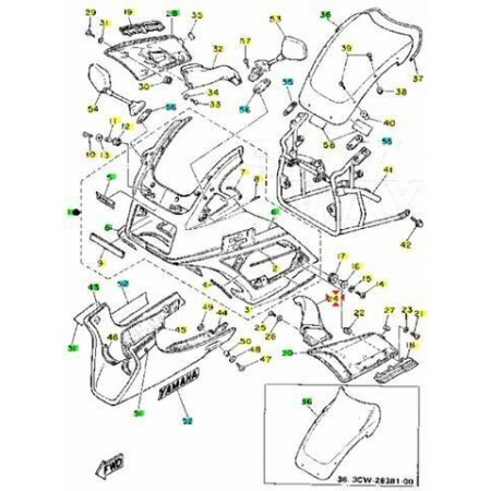 (R.5242) Vendo presa convogliatrice aria nuova per Yamaha FJ 1200 cc dal 1986 con telai 3XW , 1TX , 3CV , 3XV , in plastica con codice Yamaha 36Y2838N0000 , per applicazioni ed esploso vedere foto