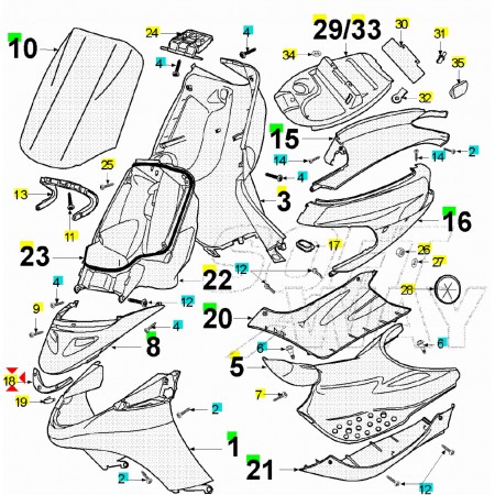 (R.15646) Vendo bordo deflettore scudo anteriore nuovo per Peugeot Scoot'elec marchiato Transval 1173149400 PP con codice 731494 , per applicazioni ed esploso vedere foto
