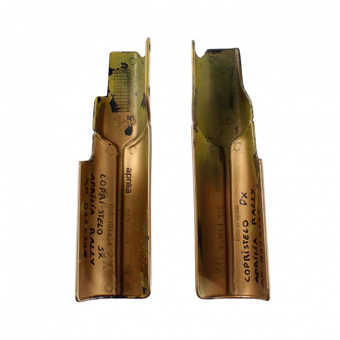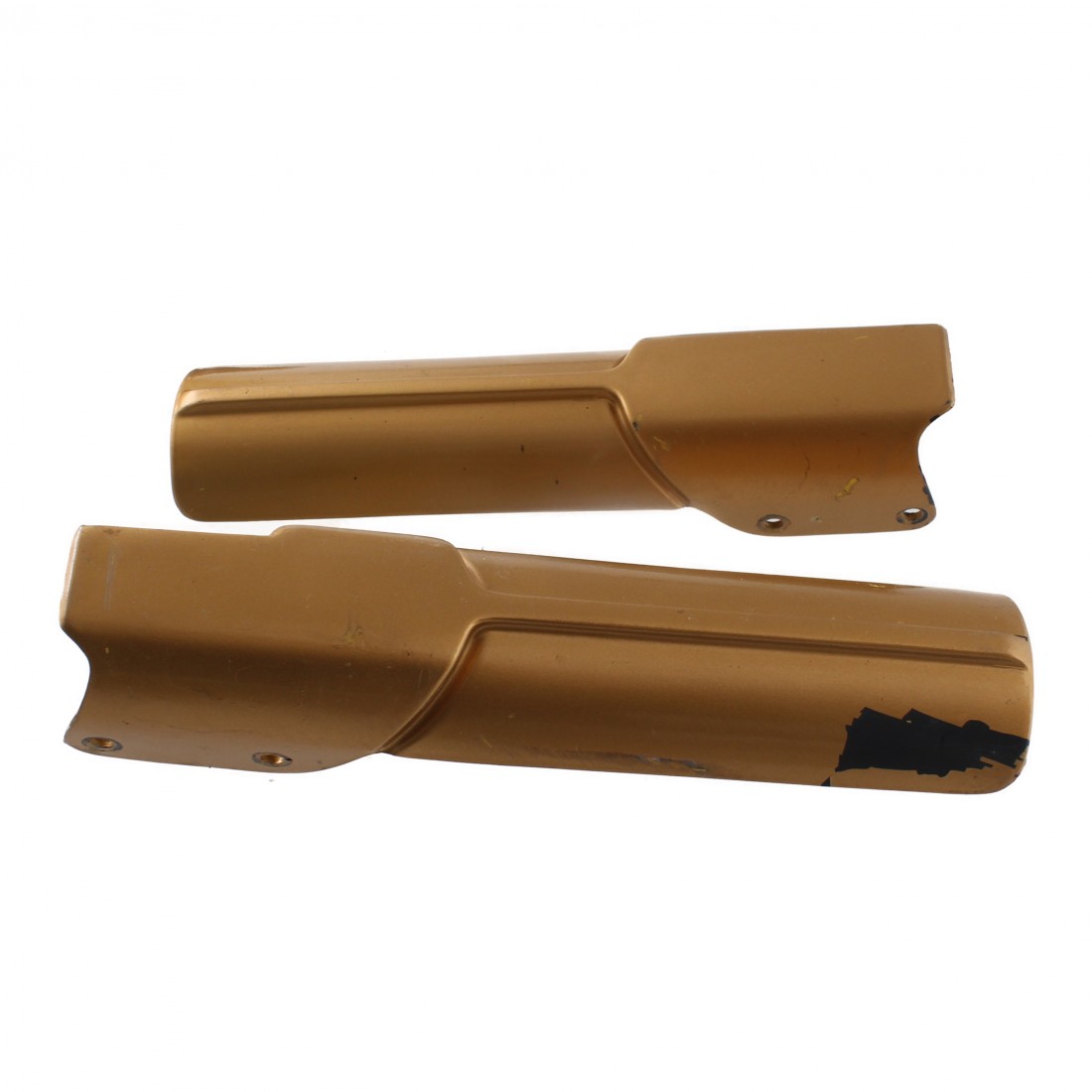 (R.16999) Vendo coppia copri steli forcella anteriore usati per scooter Aprilia Rally a liquido con codice sinistro AP8226346 e codice destro AP8226345 di colore oro da riverniciare , il prezzo si intende per la coppia , per applicazioni vedere foto