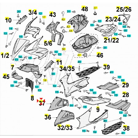 (R.18039) Vendo carena laterale usata della pedana poggiapiedi destra per Peugeot Jet Force con codice 478183 , per esploso vedere foto