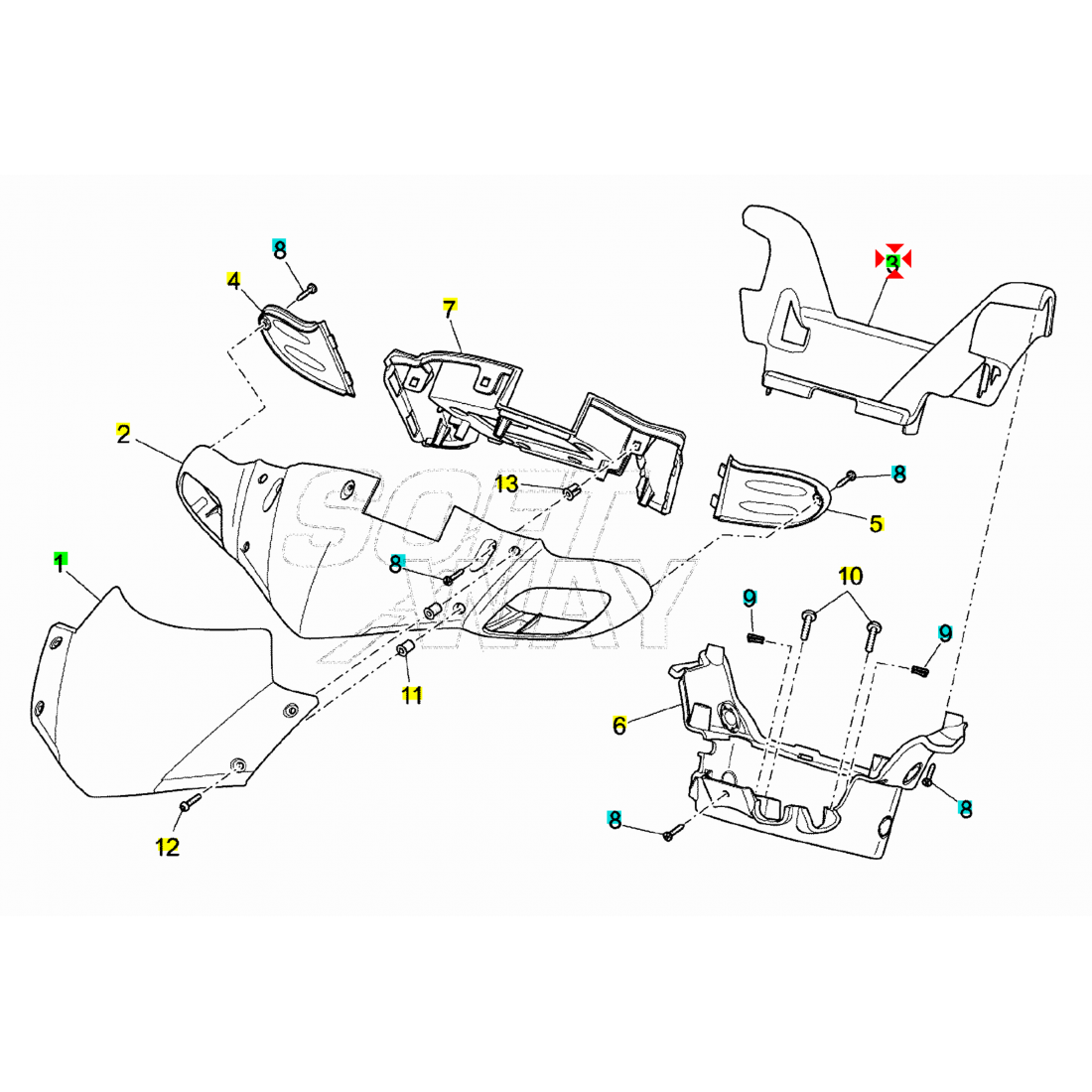 (R.20304) Vendo copri manubrio superiore usato per Aprilia SR R - R Factory da 50 cc dal 2004 al 2014 con codice Aprilia AP8268293 , per applicazioni e spaccato vedere foto