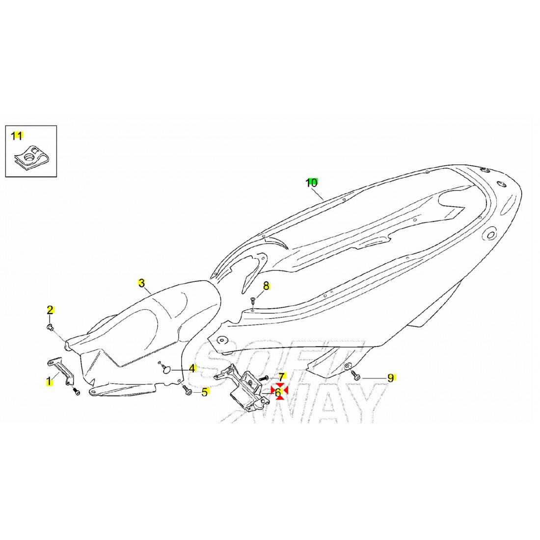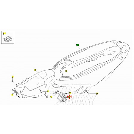 (R.21115) Vendo supporto del codone posteriore usato per Aprilia Leonardo e Leonardo ST 125 cc con codice Aprilia AP8138718 , per applicazioni e spaccato vedere foto