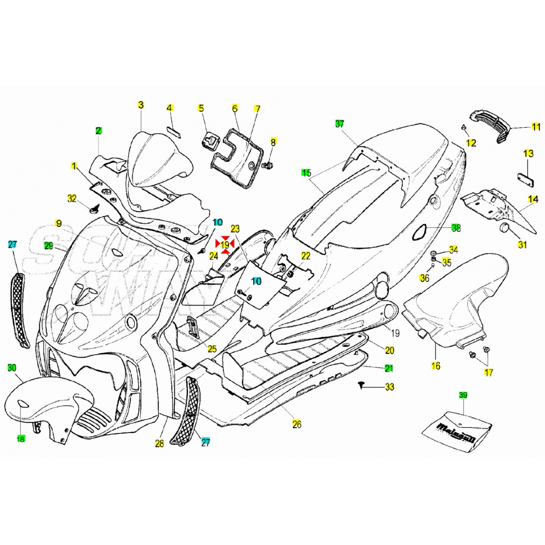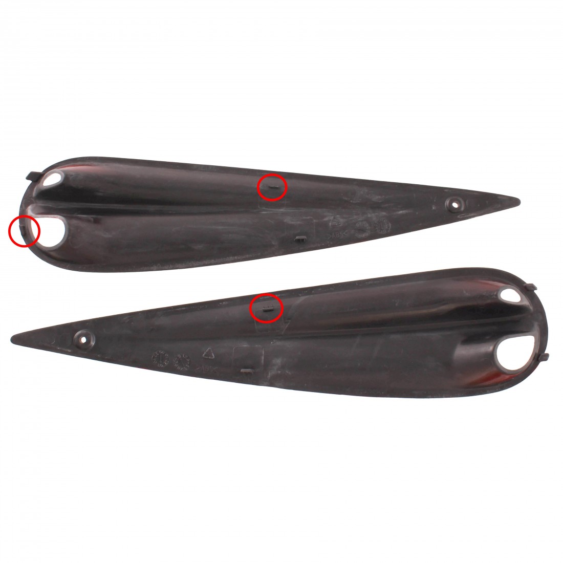 (R.21320) Vendo coppia prese d'aria laterali usate per Malaguti F12 Phantom aria e liquido dal 2001 al 2006 con codice Malaguti 07144403 e con attacchi danneggiati come cerchiati in foto , per applicazioni e spaccato vedere foto , il prezzo si intende per la coppia