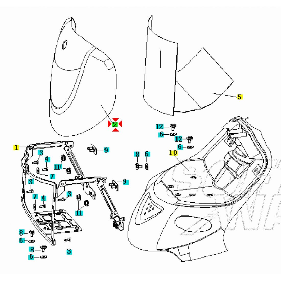 (R.22662) Vendo scudo anteriore usato senza chiave del lucchetto apertura per Keeway Hurricane 50 del 2006 con codice Keeway 65301B20TL70 di colore blu , per applicazioni e spaccato vedere foto