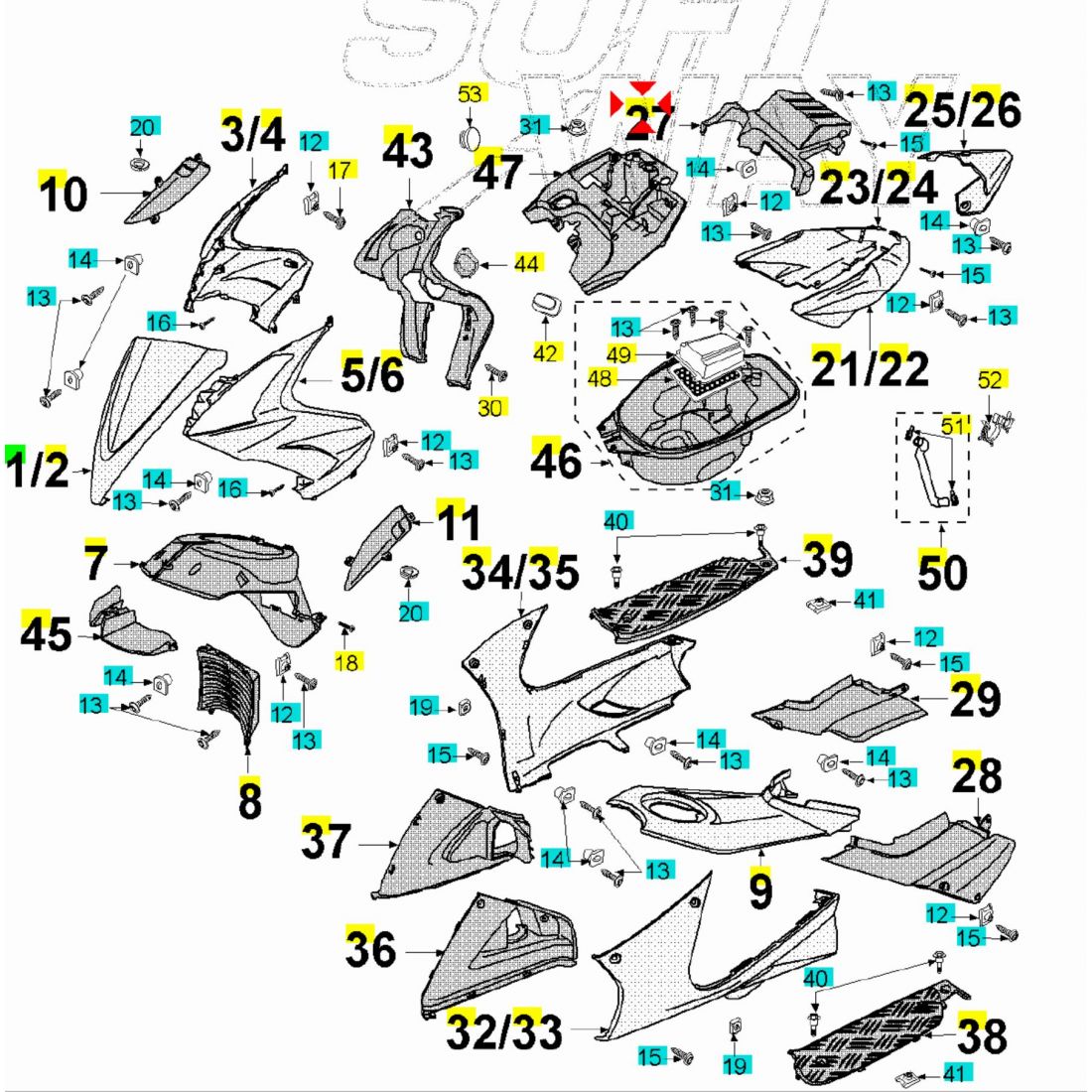 (R.22671) Vendo coperchio copri batteria usato per Peugeot Jet Force 50 e 125 con codice Peugeot 749121 , per applicazioni e spaccato vedere foto