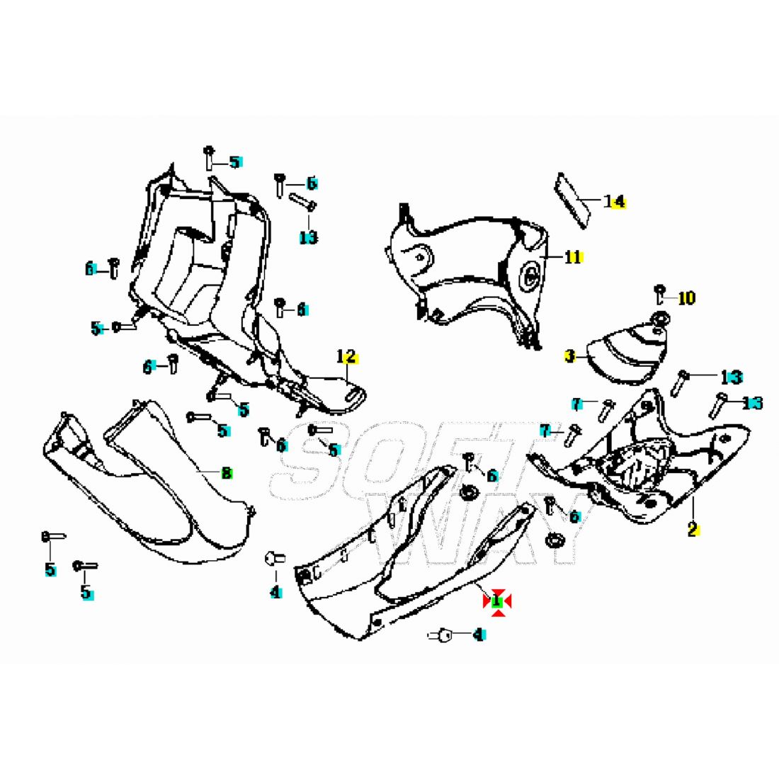 (R.22673) Vendo puntone sotto pedana usato di colore blu e grigio per Keeway Hurricane 50 dal 2007 con codice Keeway 65407B03007Z , per applicazioni e spaccato vedere foto