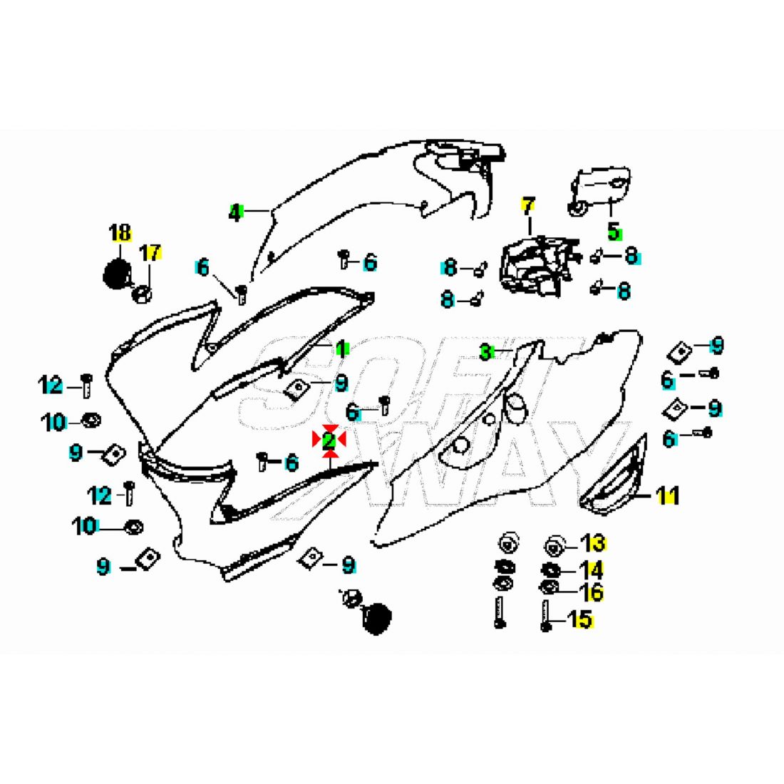 (R.22680) Vendo fianchi anteriori destro e sinistro sotto sella lato anteriore usati danneggiati come in foto per Keeway Hurricane 50 dal 2006 al 2008 con codice Keeway 65601B20T000 e 65603B20T000 , per applicazioni e spaccato vedere foto