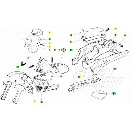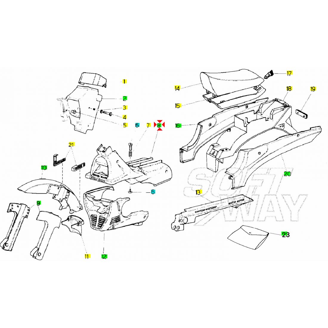 (R.23253) Vendo coppia fianchetti laterali centrali nuova per Malaguti Fifty Up dal 1994 originale Malaguti con codice 06306883 in plastica di colore nero , per applicazioni e spaccato vedere foto